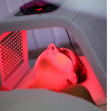 Red light therapy and near infrared light therapy uses our bodies natural responses to increase collagen production! Red light can help reduce fin lines & wrinkles, reduce joint pain, provide mental clarity, and aid in muscle recovery!